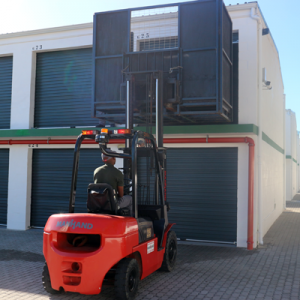 We have large mobile stairs available, as well as a forklift for heavy items.